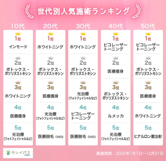 【「キレイパス byGMO」2025年美容医療人気ランキング】