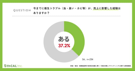 その結果、「影響した経験がある」と回答した人は37.2%にのぼり、約4割の施設が、衛生トラブルによる売上への影響を実際に経験していることが明らかになりました。