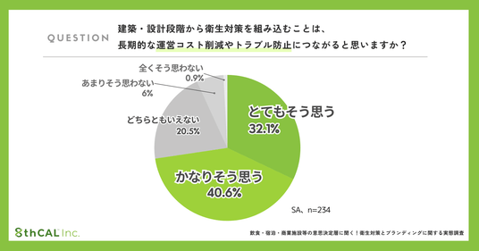 その結果、「とてもそう思う」が32.1%、「かなりそう思う」が40.6%となり、合わせて72.7%が、設計段階からの衛生対策を長期的に合理的だと考えていることが分かりました。