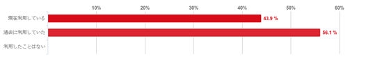 「過去に利用していた」と回答した人が56.1%で、「現在利用している」との回答の43.9%を上回った。