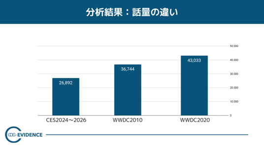 【読み取れること】WWDC2010/2020では、CES2024~2026より話量が増大している。