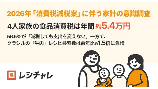 56.5%が「減税しても支出を変えない」と慎重な一方、贅沢への期待も。クラシルの「牛肉」レシピ検索数は前年比約1.5倍に急増