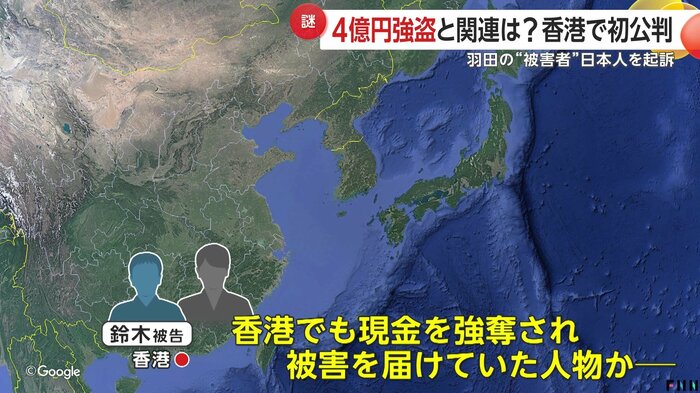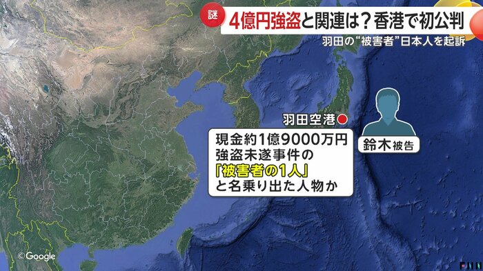 鈴木被告は香港での強盗事件の前、羽田空港の駐車場で現金約1億9000万円が強盗未遂される事件の被害者の1人として名乗り出たとみられる人物だった。