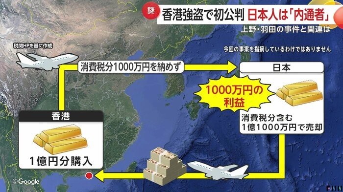 外貨の両替商などで組織する全国両替商防犯連絡会の遠藤智彦代表は、一般論として海外をまたいだ金の売買について、「日本ではなく香港に(現金を)持ち込んで、現金で金を購入したと。その時に、ある意味10%の節約、イコール収益になると。こういう見方ができるのではないか」と指摘する。