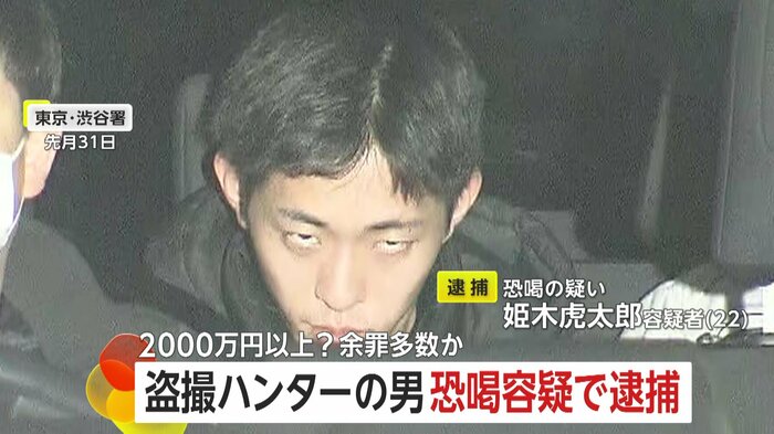1月31日、東京・渋谷警察署でカメラが捉えたのは恐喝の疑いで逮捕された姫木虎太郎容疑者(22)だ。