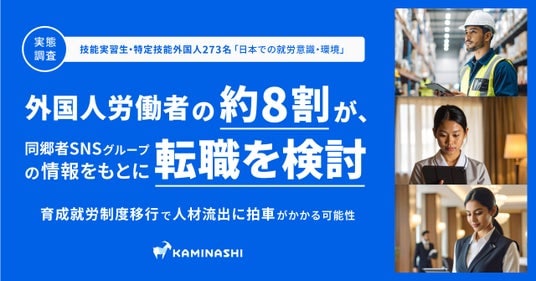 現場DXプラットフォーム『カミナシ』シリーズを提供する株式会社カミナシ(本社:東京都千代田区、代表取締役:諸岡 裕人、以下「カミナシ」)は、日本で働く技能実習生および特定技能外国人計273名を対象に「日本での就労意識・就労環境に関する実態調査」を実施しました。