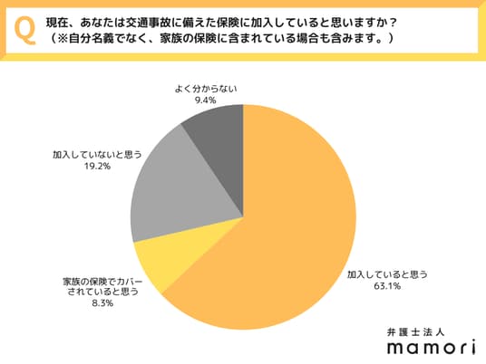 - 交通事故に備えた保険に「加入している」と認識している人は約7割