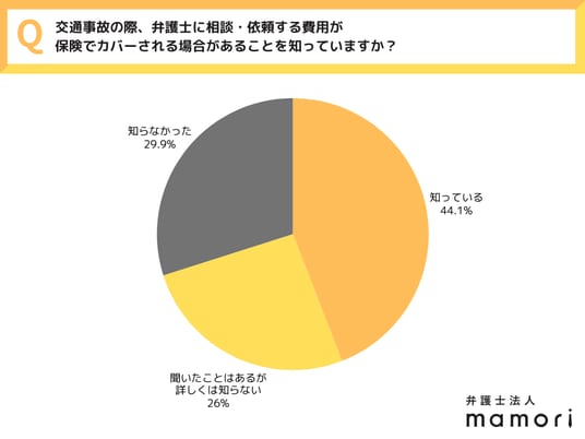 - 弁護士費用が保険でカバーされることを「知っている」人は約4割にとどまる