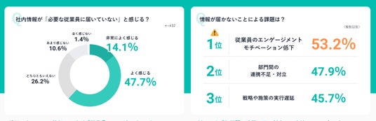 社内情報が「必要な従業員に届いていない」と「よく感じる」47.7%、「非常によく感じる」14.1%と、情報の不達は多くの企業で顕在化しています。