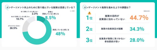 施策の浸透度について、回答者の過半数が「浸透していると感じる」と回答する一方で、施策推進の課題として「目的が従業員に伝わっていない」(44.7%)が最多となりました。