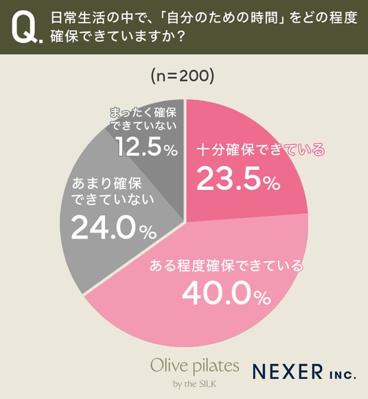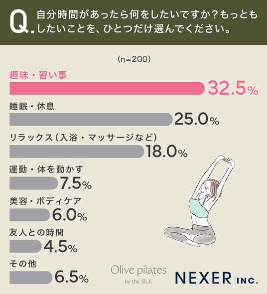 ということで今回は、マシン専門ピラティススタジオ『Olive pilates』と共同で、全国の女性200名を対象に「忙しい女性の『自分時間』と運動」についてのアンケートをおこないました。