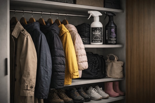 特別な道具はいりません。玄関にあるいつもの靴やコートにuchikoの撥水施工しておくだけで、それは立派な『シェルター』として雨や雪への備えの一つになります。