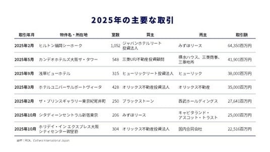 大手総合不動産コンサルティングサービスであるコリアーズ・インターナショナル・ジャパン株式会社(代表:谷川雅洋、本社:東京都千代田区、NASDAQおよびTSX:CIGI、以下コリアーズ・ジャパン)は、「ジャパン ホスピタリティ インサイト2026年2月」を発表しました。