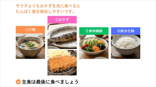 たんぱく質をしっかり摂取しやすい食べ順を意識することで、筋肉量を維持しやすくなり、結果として太りにくい体づくりにつながる可能性があります。
