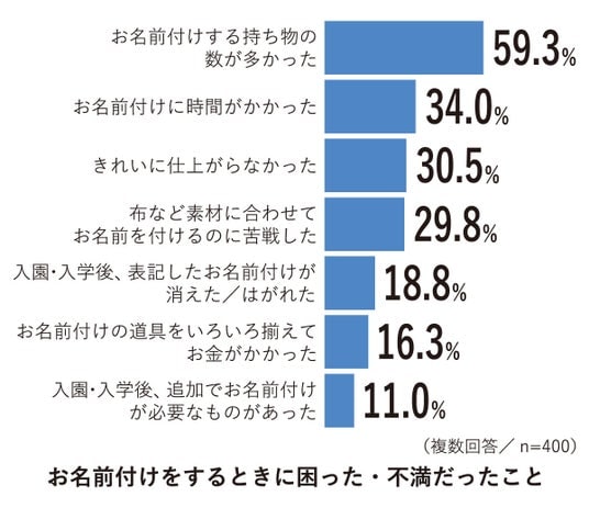 ■ お名前付けの不満、第1位は「お名前付けする持ち物の数が多かった」