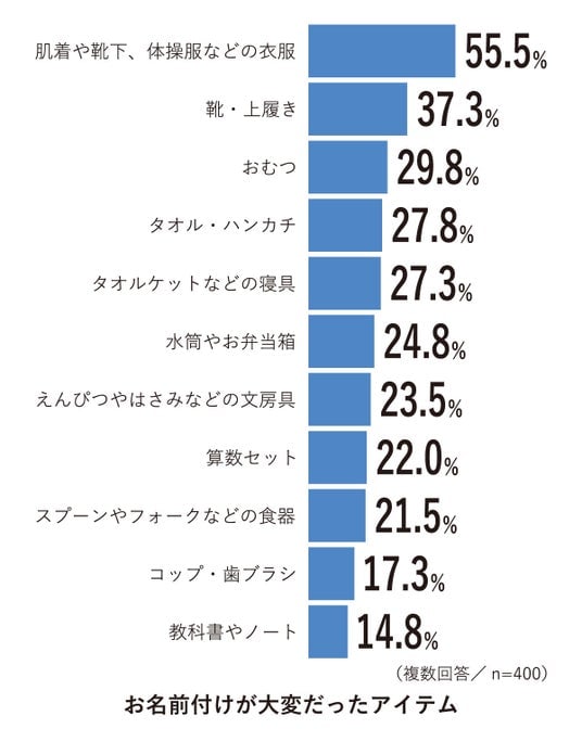 ・4割以上が3月からお名前付けをスタート!直前まで持ち物リストが配布されず、「時短」がポイント!
