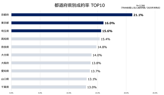 成約件数のTOPは「東京都」、成約率では「京都府」が1位に。都市部のみでなく、首都圏周辺地域でも広がる個人の事業承継。