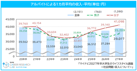 「マイナビ 2027 年卒大学生のライフスタイル調査<社会問題・収入について>」
