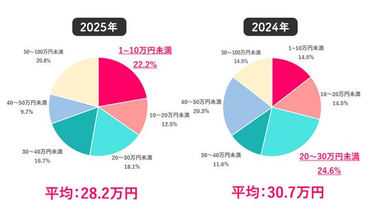 ★平均額は28.2万円、昨年よりも2.5万円減少