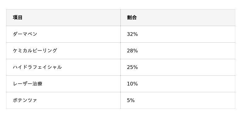 続いて「ケミカルピーリング」「ハイドラフェイシャル」という回答も見られました。