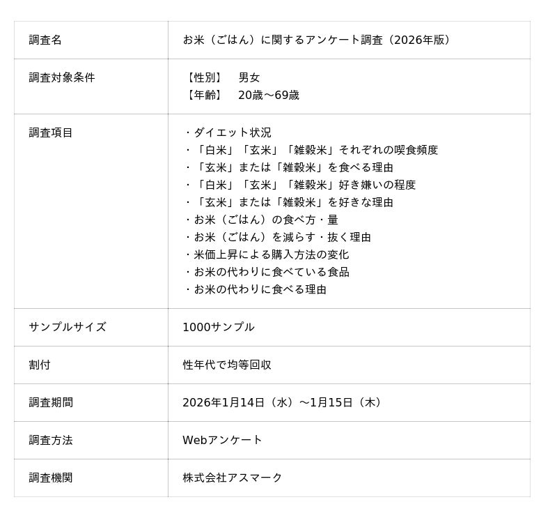 そこで今回は、2017年に実施した「お米(ごはん)に関するアンケート調査」を2026年版として再実施※いたしました。
