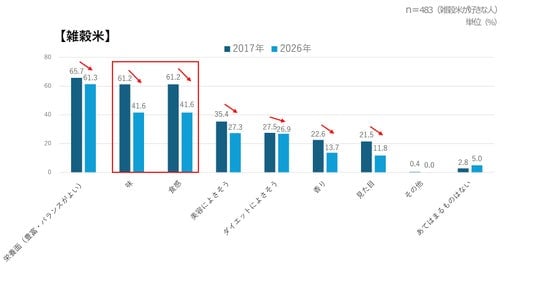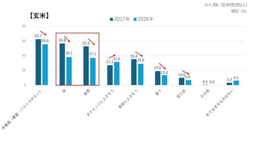 - 玄米・雑穀米を好きな理由、「味」「食感」が2017年に比べ大幅減