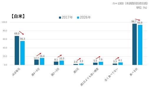 - 白米を「毎日」食べる人の割合、2017年から約12pt減少