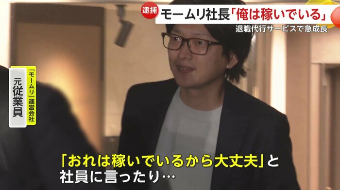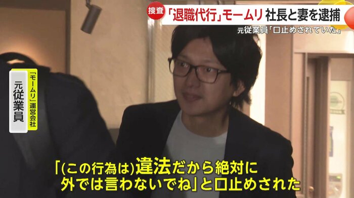 退職代行「モームリ」の運営会社が、依頼者を弁護士にあっせんし違法な紹介料を受け取ったとされる事件で、運営会社の社長夫妻が逮捕された。社内のグループLINEには「紹介1件につき1万6500円のバック」とキックバックが疑われる文言が書かれていて、元従業員は「違法だから絶対に外では言わないでね」と口止めされたと証言する。さらに、夫妻は高級住宅に居住するなど急成長の裏で私生活も派手だったという。