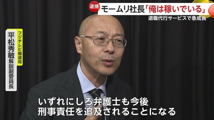 一方、モームリ運営会社に紹介料を支払っていた弁護士法人側への捜査について、フジテレビ・平松秀敏解説副委員長は「今回の事件では弁護士も悪い。一緒になって違法行為に及んでいる可能性が高い。ただ同時に逮捕されてないのを見ると、おそらく捜査に協力しているのでは。いずれにしろ弁護士も今後、刑事責任を追及されることになる」と指摘する。