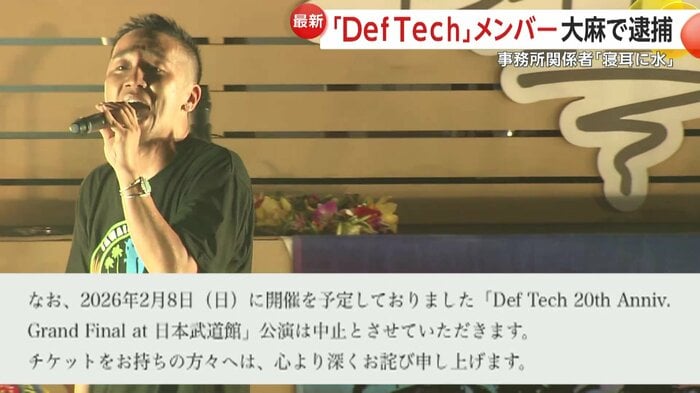 音楽ユニット「Def Tech(デフテック)」のMicro(マイクロ)こと、西宮佑騎容疑者(45)が、乾燥大麻を所持した疑いで逮捕された。デビュー20周年記念ツアー中で、8日に予定されていた日本武道館公演は中止となった。事務所は「寝耳に水」とコメントした。