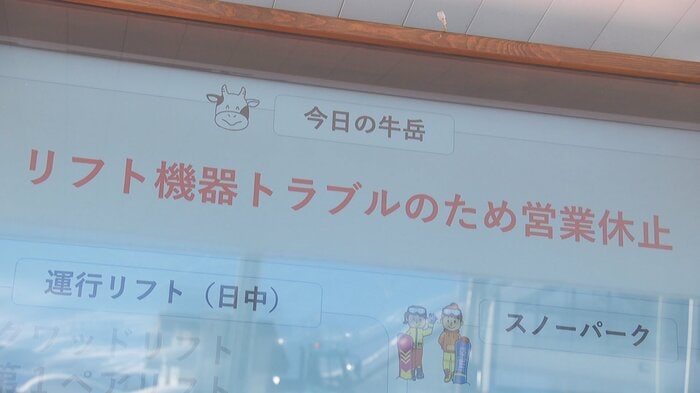 原因は一部の配線の断線とみられ、牛岳温泉スキー場は修理や調整に時間を要することや安全面を考慮し、午前9時ごろに営業休止となりました。