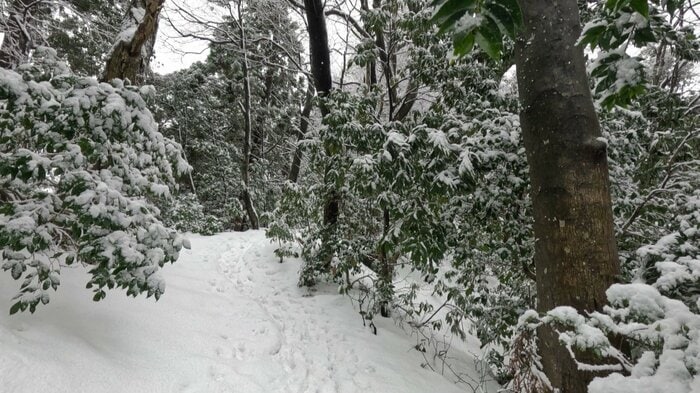 その年の干支の名がつく山に登る「干支登山」。午年にふさわしく、馬の「鬣(たてがみ)」という文字が名前に入る馬鬣山が選んだ。大雪の後にもかかわらず、整備された中部北陸自然歩道にはしっかりとトレースが残されていた。