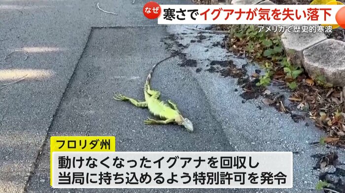 温暖な地域にも冬の嵐…“仮死状態”のイグアナ続出