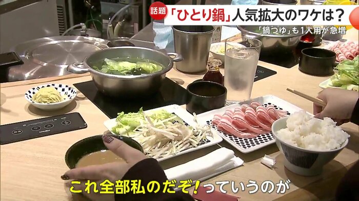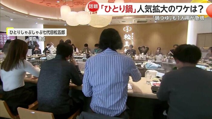 取材班が訪れたのは、ひとりでしゃぶしゃぶやすきやきの鍋が楽しめる、ひとり鍋専門店「ひとりしゃぶしゃぶ七代目松五郎」(東京・港区)。特に女性客から人気を集めているという。