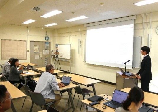 発表会は東京科学大学TCカレッジ受講生と本学総合技術部技術職員に公開で実施し、東京科学大学TCカレッジ事務統括部門の柗見吉朗部門長の司会進行により、対面11人とオンライン44人の計55人の参加者で行いました。