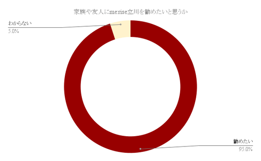「家族や友人にme:rise立川を勧めたいと思いますか」という設問に対し、95%が「勧めたい」と回答。