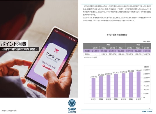 会員制マーケットリサーチサービスを提供している、株式会社SVPジャパン(本社:東京都中央区、代表取締役社長:橋本 雅、以下「SVPジャパン」)は、本日、SVP注目市場分析レポート「ポイント消費-国内市場の現状と将来展望-」を、会員企業向けに公開いたしました。