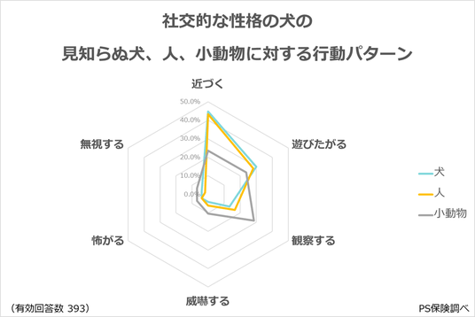 性格別:愛犬の見知らぬ犬、人、小動物に対する反応