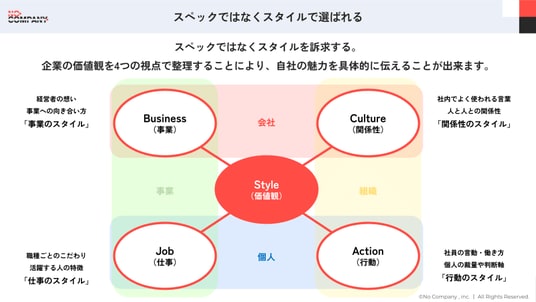 No Companyでは、この「スタイル」を以下の4つの視点で定義しています。