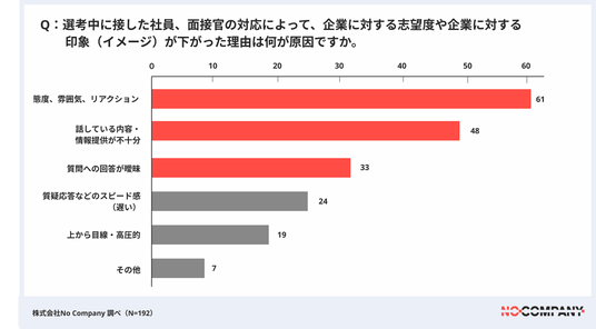 また、面接官の態度やコミュニケーションは企業文化が露出する瞬間であり、学生はその表情・言葉遣い・対話姿勢から「この会社の人はどう働くのか」という社内の人間関係(関係性のスタイル)を敏感に読み取っています。誠実さや準備度やレスポンスの速さといった何気ない行動が、“魅力”あるいは“リスク”として作用していました。面接官トレーニングやインナーブランディング研修の実施により、既存社員一人一人の意識改革が必要です。