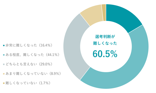 ・生成AI書類の影響で選考判断が難化、人事の6割超が回答