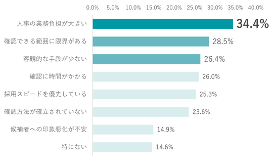 採用判断の裏付け不足、最多理由は「人事の業務負担が大きい(34.4%)」