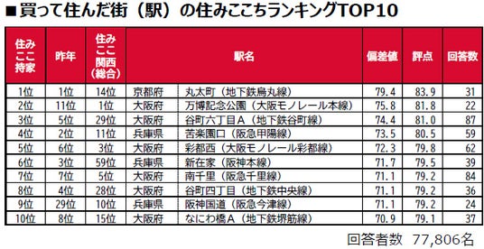 買って住んだ街(駅)の住みここちランキング2025<関西版>1~50位