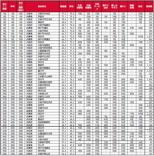 ※住みここ関西(総合)の順位は、2025年7月9日に発表した「街の住みここちランキング2025<関西版>」の順位を表記しています。