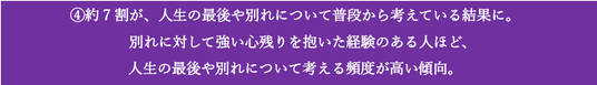 4.約7割が、人生の最後や別れについて普段から考えているという結果に。