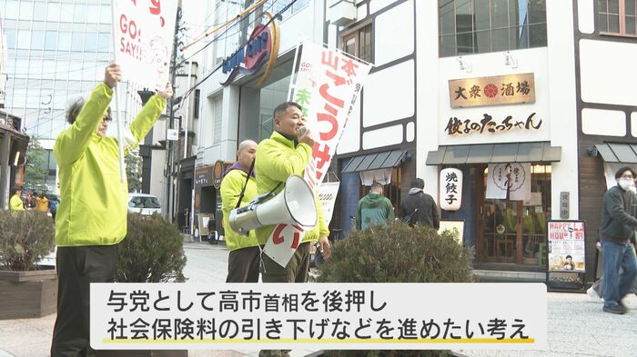 与党として高市総理を後押しし、社会保険料の引き下げなど、改革を進めたいと訴える。