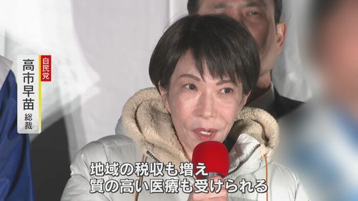 「地域の税収も増え、質の高い医療も受けられる、福祉も受けられる」。高市総理の一言一言に大きな拍手が沸き、会場は熱気に包まれる。