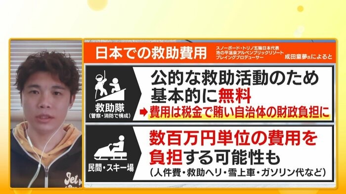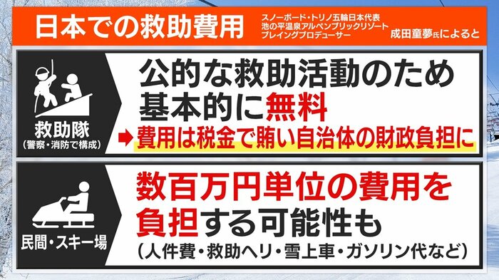 成田童夢氏「救助費用、コース外を滑るなら全額自己負担でやるべき」