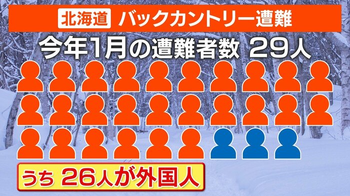 北海道では、1月だけで29人がバックカントリーで遭難しており、うち26人が外国人でした。