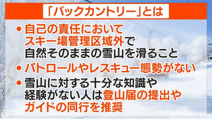 海外のスキー場だと、バックカントリーをするという文化がありますので、それを(日本)国内でしてしまうと、こういった事故が起きてしまうと。